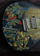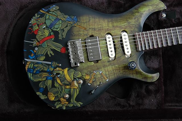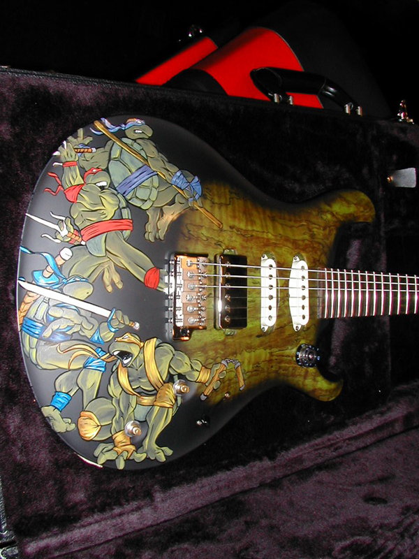 After seeing some drawings I had done, I was asked by Danny Spitz of Anthrax to paint an all new Ninja Turtles guitar for their 2005-2006 World Reunion Tour. The previous Ninja Turtle guitars Danny had rocked throughout the years had since been donated to various places, and with Paul Reed Smith making a custom guitar and head stock for Danny he wanted something special.