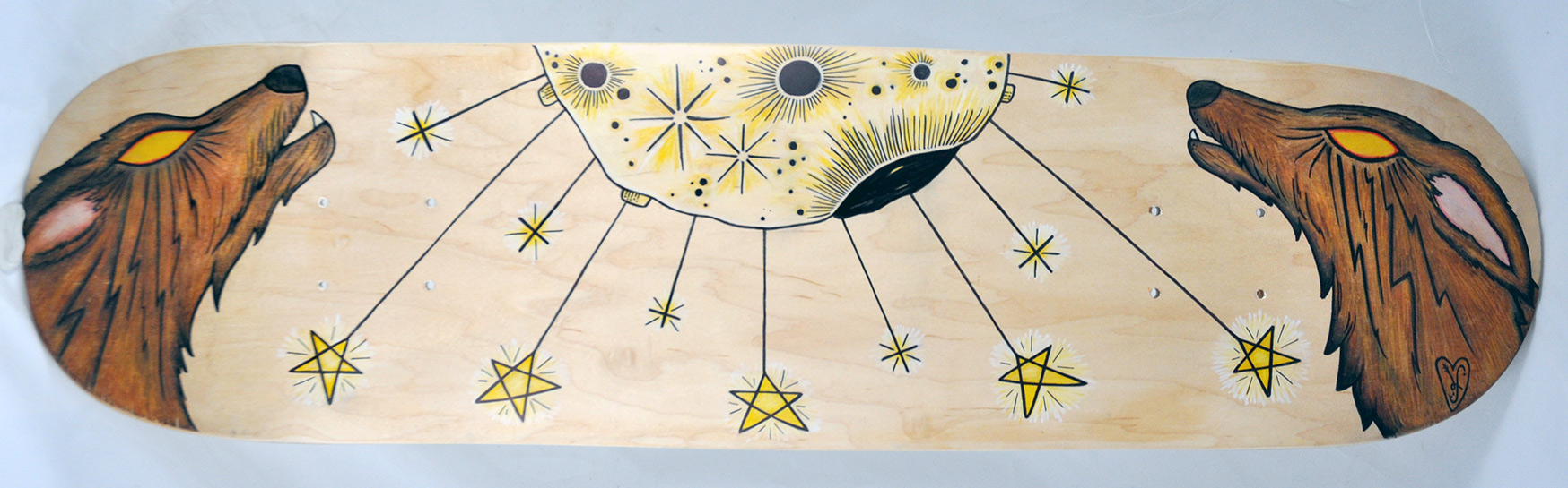 Pencil and Marker on Skateboard. From our Deck The Walls Skateboard show. Art Purchased from this show will ship after the 16th of December. Please contact us at the Gallery if you have any questions. 561-832-4655. By: Lara Scarlett Medium: Mixed Media Dimensions: 8 x 31.5 ♥ Share This: