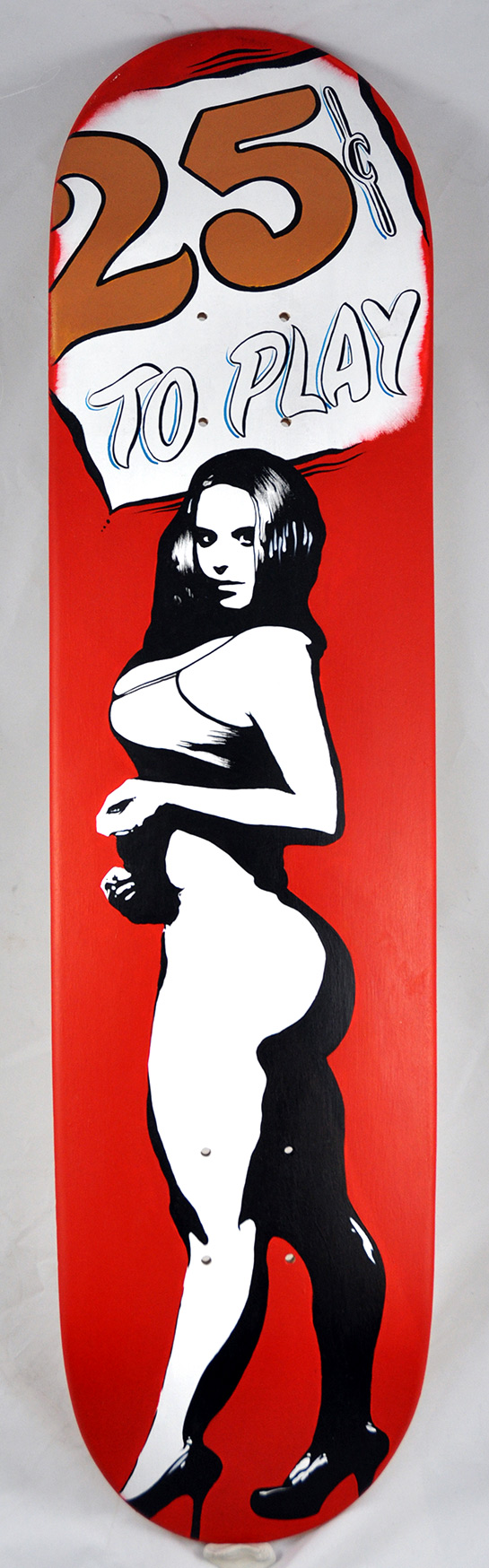 Acrylic on skateboard. From our Deck The Walls Skateboard show. Art Purchased from this show will ship after the 16th of December. Please contact us at the Gallery if you have any questions. 561-832-4655. By: Jake Drone Medium: Acrylic Original Dimensions: 7.5 x 31.5 ♥ Share This: |