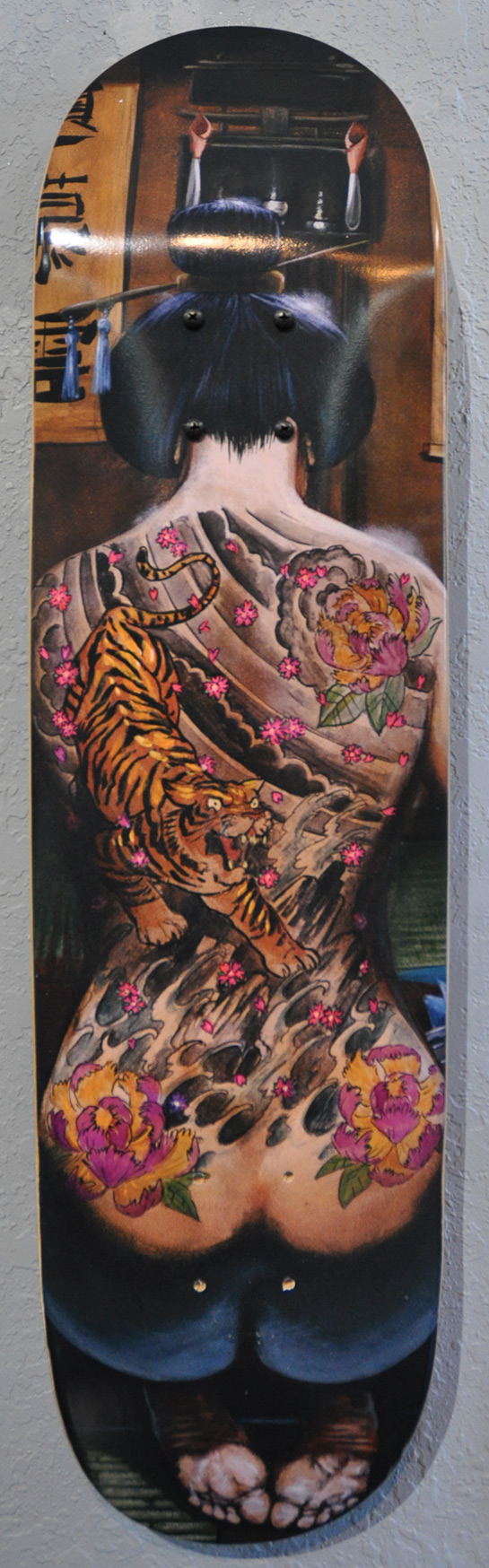 Printed Skateboard Deck. From our Deck The Walls Skateboard show. Art Purchased from this show will ship after the 16th of December. Please contact us at the Gallery if you have any questions. 561-832-4655. By: JR Linton Medium: Skateboard Dimensions: 7.75 x 31.5 ♥ Share This: |