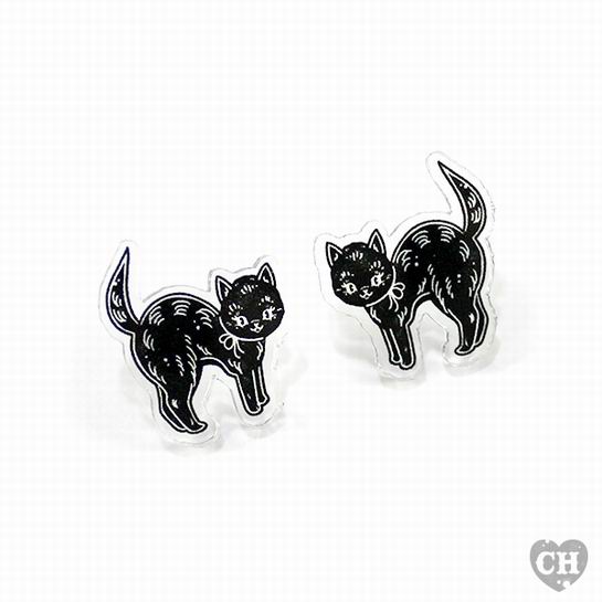 Creep Heart Black cat Earring