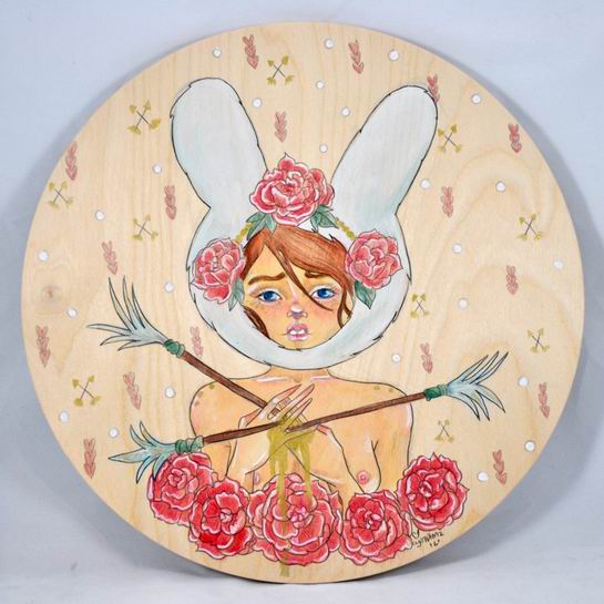 Girl with bunny head. Art Purchased from this show will ship after the show closes on April 30th. Please contact us at the Gallery if you have any questions. 561-832-4655. By: Niki Solime Medium: Mixed Media Dimensions: 12 x 12 ♥ Share This: