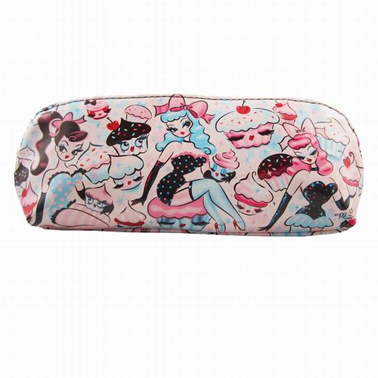 The Cupcake Dolls Cosmetic Bag is the perfect size for the gal on the go! It has a flat bottom so you can place it on your boudoir counter as you pretty yourself up or take your glamour necessities along with you in your tote, purse or back pack! This cute cupcake themed cosmetic case has a sweet silver Fluff cupcake zipper pull topped with a sparkling pink crystal. The interior features the signature Fluff pink on black satin logo print. Original artwork is designed by Miss Fluff (Claudette Barjoud). Her inspiration for this collection came from vintage pinup art of the 1940's and 1950's and whimsical old cartoons such as Betty Boop and the work of Ub Iwerks, one of Disney's first animators. By: Miss Fluff Medium: Cosmetic Bag Dimensions: 9 x 3 x 2 ♥ Share This: |