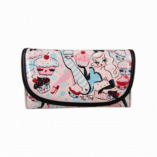 This sweet wallet features original vintage pinup and cartoon inspired artwork by Miss Fluff (Claudette Barjoud). The design is in soft candy colors with whimsical cupcakes sporting long, luscious lashes, and cute pinup dolls amidst the cupcakes in a magical, sugar sparkly world! It has a snap closure and the interior lining features the Fluff signature black and pink satin print.It has many slots for all your credit cards and a zippered pocket for coins with an ultra cute silver Fluff cupcake charm topped with a sparkling pink crystal! Approximate Dimensions: 6.5 inches wide x 3.75 inches high x 1 inch deep By: Miss Fluff Medium: Wallet Dimensions: 7 x 4 x 1 ♥ Share This: |
