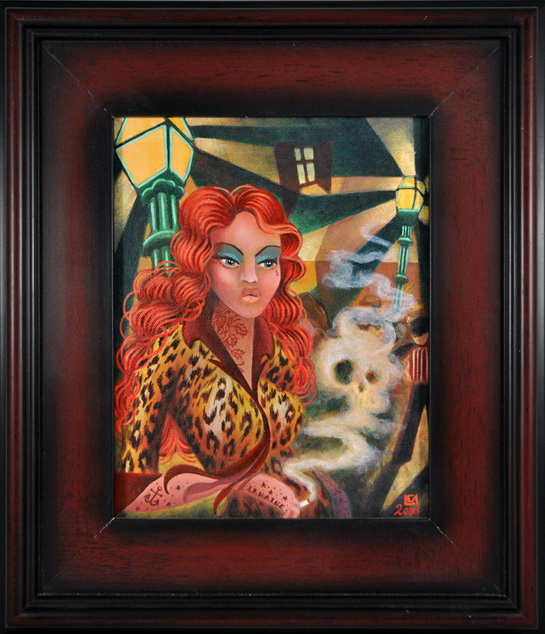 Framed original oil on canvas featuring a lady smoking in a leapord jacket. Purchased from this show will ship after the show closes on Aug 13th. Please contact us at the Gallery if you have any questions. 561-832-4655. By: Lea Vendetta Medium: Oil Original Dimensions: 13 x 15 ♥ Share This: