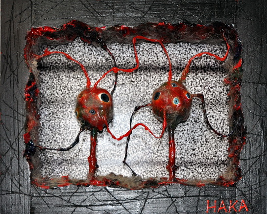 N.S.A. Nightmare Collection Division . Original mixed media using assemblage in a custom wood frame. Contains embedded animal hair. Pieces purchased from this show will ship after the show closes on Nov 19th. Please contact us at the Gallery if you have any questions. 561-832-4655. By: Axe Haka Medium: Mixed Media Dimensions: 13 x 10 ♥ Share This: