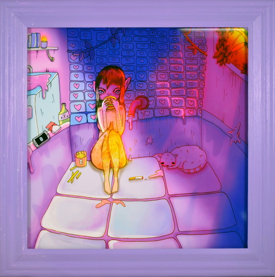 Framed original ink and digital. Pieces purchased from this show will ship after the show closes on March 25th. Please contact us at the Gallery if you have any questions. 561-832-4655. By: Abby Jane Medium: Mixed Media Dimensions: 10 x 10 ♥ Share This:
