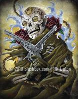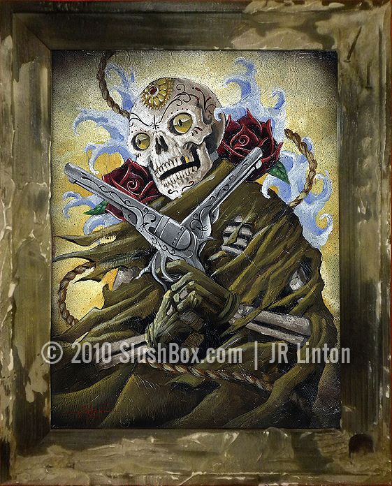 The Merchant of Death rides again! 11 x 14 Original Oil on Board. Custom framed with adobe style woden and plaster frame. By: JR Linton Medium: Oil Original Dimensions: 11 x 14 ♥ Share This: |