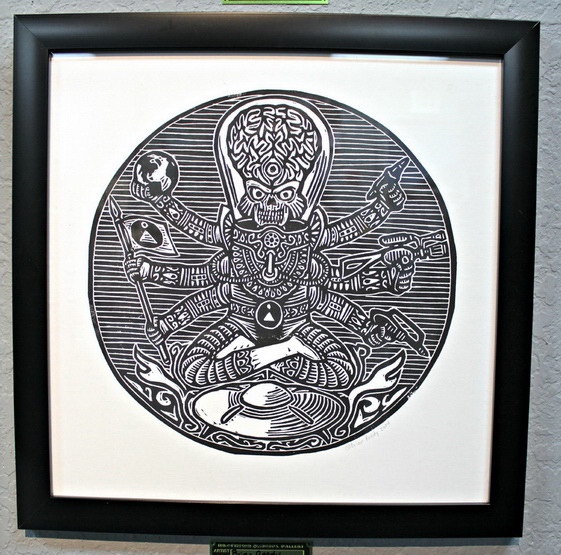 Mars Attacks -Lino cut -15x15 ♥ Share This: