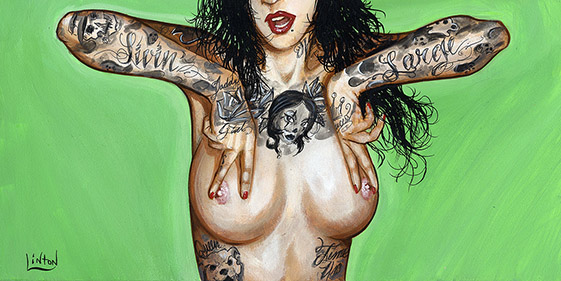 Part of the Tits and Tats Series, Featuring Black and gray ink straight out of the west coast. Signed Original Acrylic on Board. By: JR Linton Medium: Acrylic Original Dimensions: 12 x 6 ♥ Share This: |