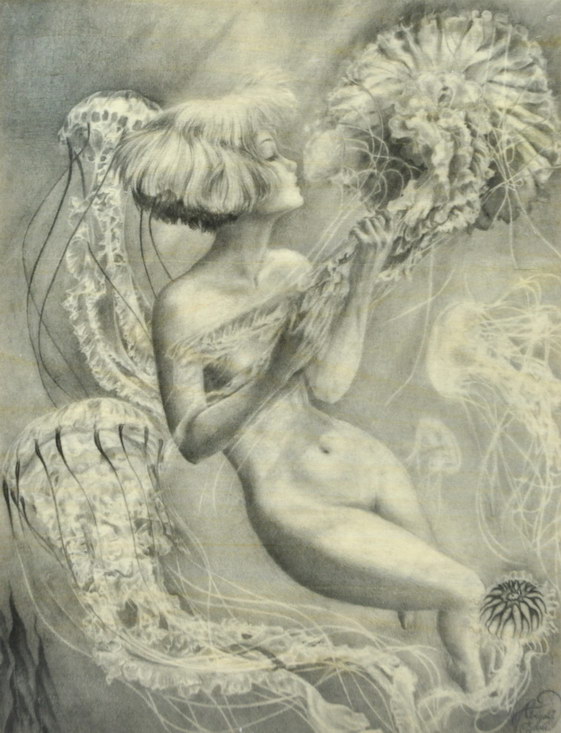 Woman with Jellyfish. Print On Wood Art Purchased From this Show is on Display till October 11th and will be shipped after that if purchased.