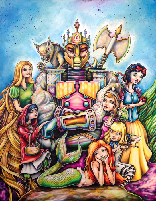 Fairytales and Robots. Art Purchased from this show will ship after the show closes on Feb 28th. Please contact us at the Gallery if you have any questions. 561-832-4655. By: Bryan Collins Medium: Acrylic Original Dimensions: 11 x 14 ♥ Share This: