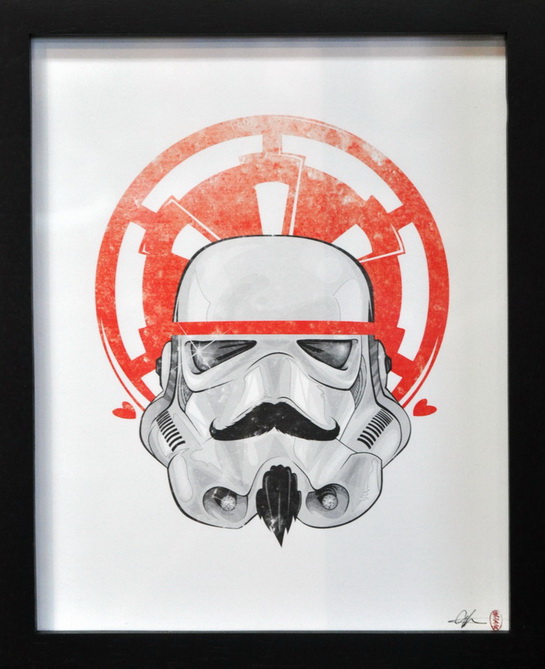 Art from our Nerdcore III - The Geek Strikes Back Group Art Show. Art Purchased from this show will ship after the show closes on June 20th. Please contact us at the Gallery if you have any questions. 561-832-4655. Stormtrooper with Stashe By: Cryssy Cheung Medium: Poster Dimensions: 8 x 10 ♥ Share This: