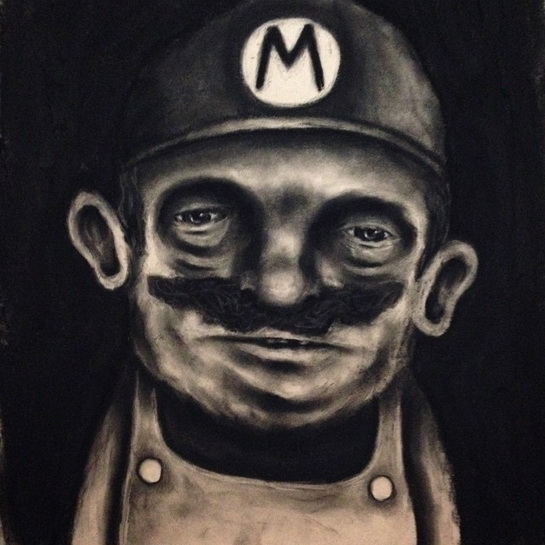 Art from our Nerdcore III - The Geek Strikes Back Group Art Show. Art Purchased from this show will ship after the show closes on June 20th. Please contact us at the Gallery if you have any questions. 561-832-4655. Charcoal Portrait of Mario By: Creeptoons Medium: Pencil Dimensions: 16 x 20 ♥ Share This: