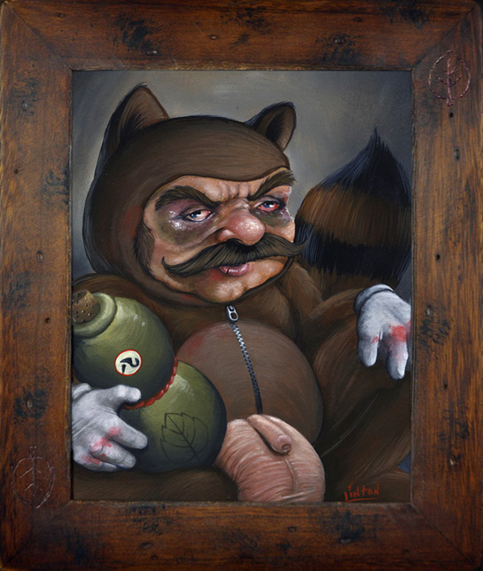 Art from our Nerdcore III - The Geek Strikes Back Group Art Show. Art Purchased from this show will ship after the show closes on June 20th. Please contact us at the Gallery if you have any questions. 561-832-4655. Beat him all you want, youll never pry the Sake from his hands. By: JR Linton Medium: Acrylic Original Dimensions: 8 x 10 ♥ Share This:
