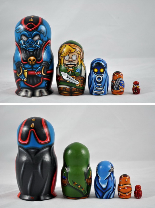 Art from our Nerdcore III - The Geek Strikes Back Group Art Show. Art Purchased from this show will ship after the show closes on June 20th. Please contact us at the Gallery if you have any questions. 561-832-4655. Painted wooden nesting dolls. Game Over Return of Ganon By: William Butler Medium: Acrylic Original Dimensions: 5.25 x 3 ♥ Share This: