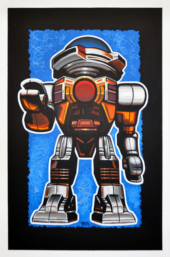 Art from our Nerdcore III - The Geek Strikes Back Group Art Show. Art Purchased from this show will ship after the show closes on June 20th. Please contact us at the Gallery if you have any questions. 561-832-4655. Its a Robot By: Danny Tito Medium: Acrylic Original Dimensions: 24 x 36 ♥ Share This: