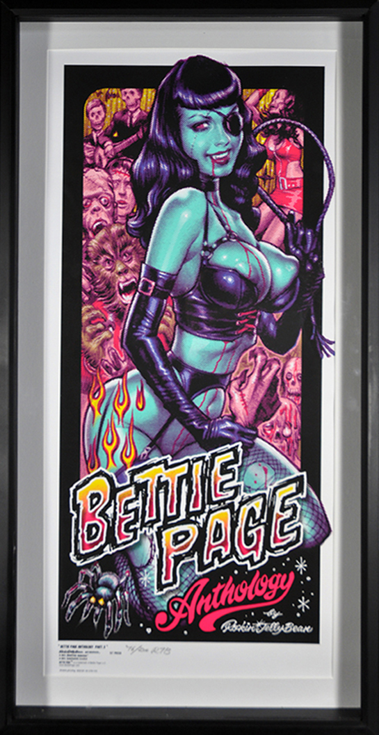 Authentic Rockin Jelly Bean piece Bettie Page Zombie Hunter Framed Signed Limited Edition First Run #76 of 200. We are an authorized Rockin' Jelly Bean dealer and this piece is straight from Japan. From our Annual Hotrod show and Anniversary Party. Art Purchased from this show will ship after the show closes on June 20th. Please contact us at the Gallery if you have any questions. 561-832-4655. By: Rockin Jelly Bean Medium: Silkscreen Dimensions: 17 x 32 ♥ Share This: |
